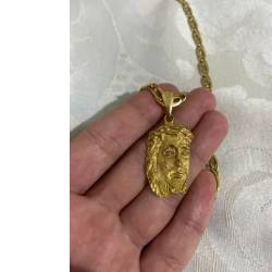 .corrente de ouro 18k .peso 22g .tamanho 60 cm . pingente rico em detalhes do rosto de cristo com pedras de brilhantes . telefone para contato 88 9 .994752**