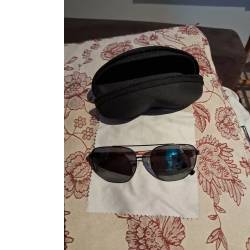 Óculos de sol modelo dobrável original pequeno risco na lente direita como mostra na foto só aparece em determinadas luzes com case de couro