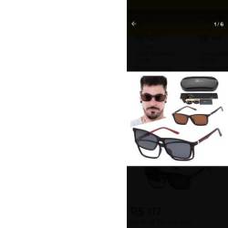 Essa armação permite que vc tenha suas lentes de grau , e quando achar necessário proteção contra o sol, basta colocar os clip de lentes escuras armação nova, sem uso , no estojo cor preta