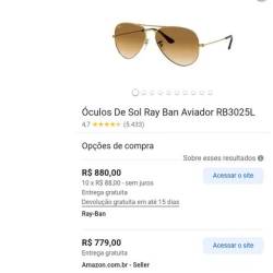 Óculos rayban aviador original 3025 caixa do óculos não é a original.