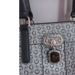 Bolsa guess , preta , material tecido monograma , original