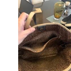 Bolsa usada caramelo e off white com detalhes em linho