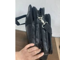 Bolsa sintético na cor preto. Possui alça para ser usada no ombro e a alça transversal podendo ser removida. Possui três repartições.