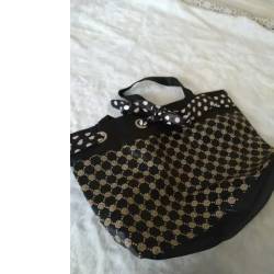 Bolsa dona karan ny, original, estilo carteiro, preta em tecido monograma, linda, ideal para viagens, escritório, cross body mas também de mão, espaçosa e prática, alça em couro, detalhes em dourado acompanha bag