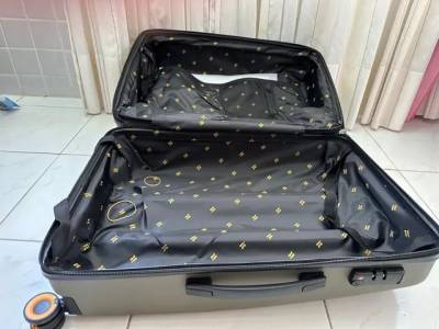 70x45x25cm O rasgo não compromete o uso Uma mala desse tamanho custa no mínimo 300 É da marca MainStays
