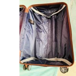 Mala com rodinhas, com 2 compartimentos, cadeado embutido. Cor dourada tamanho fechada 50x35x20 ideal para viagens curtas a melhor opção para vc levar seus pertences bem acomodados ótima para suas férias de final de ano