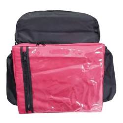 Bolsa escolar contem apenas um bolso lateral duas bolsos superiores.