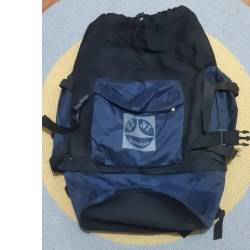 60 litros, impermeável, cor azul com preto, 60x34x25 cm não é a prova dgua. Ótimo estado, fecho de ziper, de poliéster e nylon. Usado duas vezes.