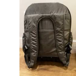 Vendo uma linda e prática mochila para notebook de bordo na cor preta, com excelentes rodinhas, vários bolsos, usada poucas vezes. Peça única. Super leve e prática. Puxador em aluminio. Y medidas alt 45, larg. 18, profund. 18.