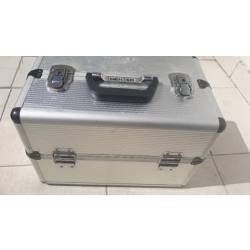 Maleta de maquiagem prateada, tamanho médio, que contém 4 gavetas, um compartimento interno grande, 6 porta-pincéis e uma chave. Produto adquirido em dezembro de 2022. Está com pouquíssimas marcas de uso.