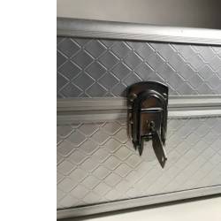 Maleta de maquiagem prateada, tamanho médio, que contém 4 gavetas, um compartimento interno grande, 6 porta-pincéis e uma chave. Produto adquirido em dezembro de 2022. Está com pouquíssimas marcas de uso.