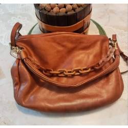 Modelo verona, caramelo, alça de mão e de ombro. Um compartimento, bolsos internos. Porta-chaves e espelho.