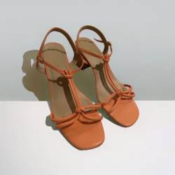 Linda sandália amarração salto baixo 5cm disponível nas cores laranja e preto