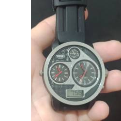 Relógio skmei esportivo caixa preta tampa traseira em aço inox parafusada com vedação à prova dágua pulseira em silicone com tranca em aço inox preço r$ 200 pra vender logo