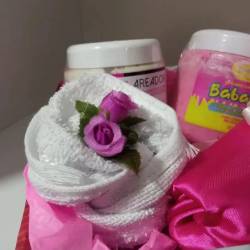 Cesta spa para o corpo 1 esfoliante corporal e rosto 1 clareador corporal 1 toalha de mãos 1 touca de cetim. 1 embalagem presente. Trabalhamos com entrega mediante a taxa de acordo com o bairro.