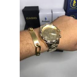 Vendo esse lindo relógio techinhos dois horários aprova de água todo original pra vender logo 200