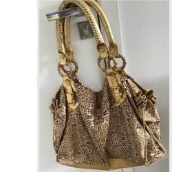 Bolsa bem grande original, toda em couro trabalhada, corte a laser na cor dourada.