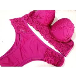 Conjunto sem bojo e com aro de sustentação. Feito em renda elástica de alta qualidade e tecido anticalor. Calcinha forrada com detalhe duplo nas alças. Sutiã com babados sexy e alças reguláveis. Tamanho g e gg cassielingerie