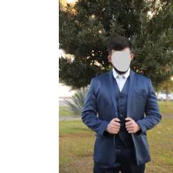 Terno de noivo azul marinho semi acetinado com colete, marca growing.